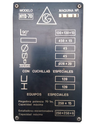 | Especificaciones de la Punzadora GEKA Hydracorp-70S | |